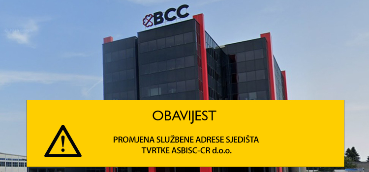 Obavijest o promjeni službene adrese sjedišta tvrtke ASBIS-CR d.o.o.