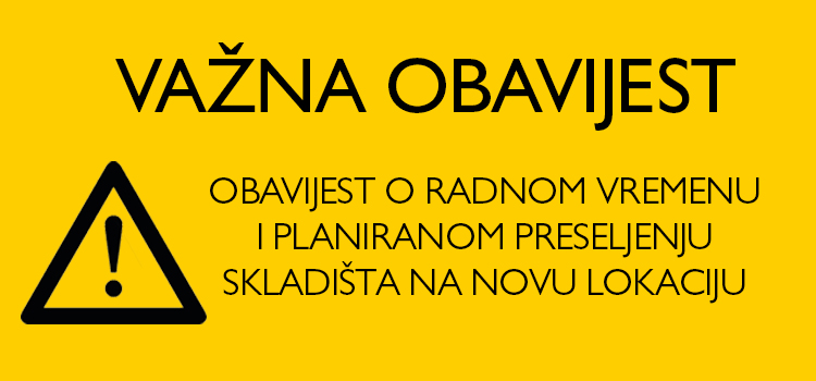 OBAVIJEST O RADNOM VREMENU TIJEKOM BLAGDANA I PLANIRANOM PRESELJENJU SKLADIŠTA